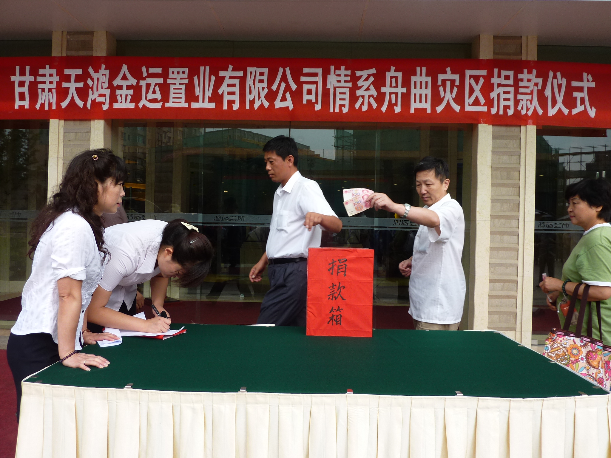8月11日下午,民政廳8樓會議室舉行了民建中央及民建甘肅省委向舟曲特大山洪地質(zhì)災(zāi)害捐贈儀式,甘肅省政協(xié)常委、民建甘肅省委副主委劉永輝先生積極響應(yīng)并 慷慨解囊,代表甘肅天鴻金運置業(yè)有限公司捐贈50萬元,天鴻金運公司員工捐款13585元 ,總計捐款513585元。