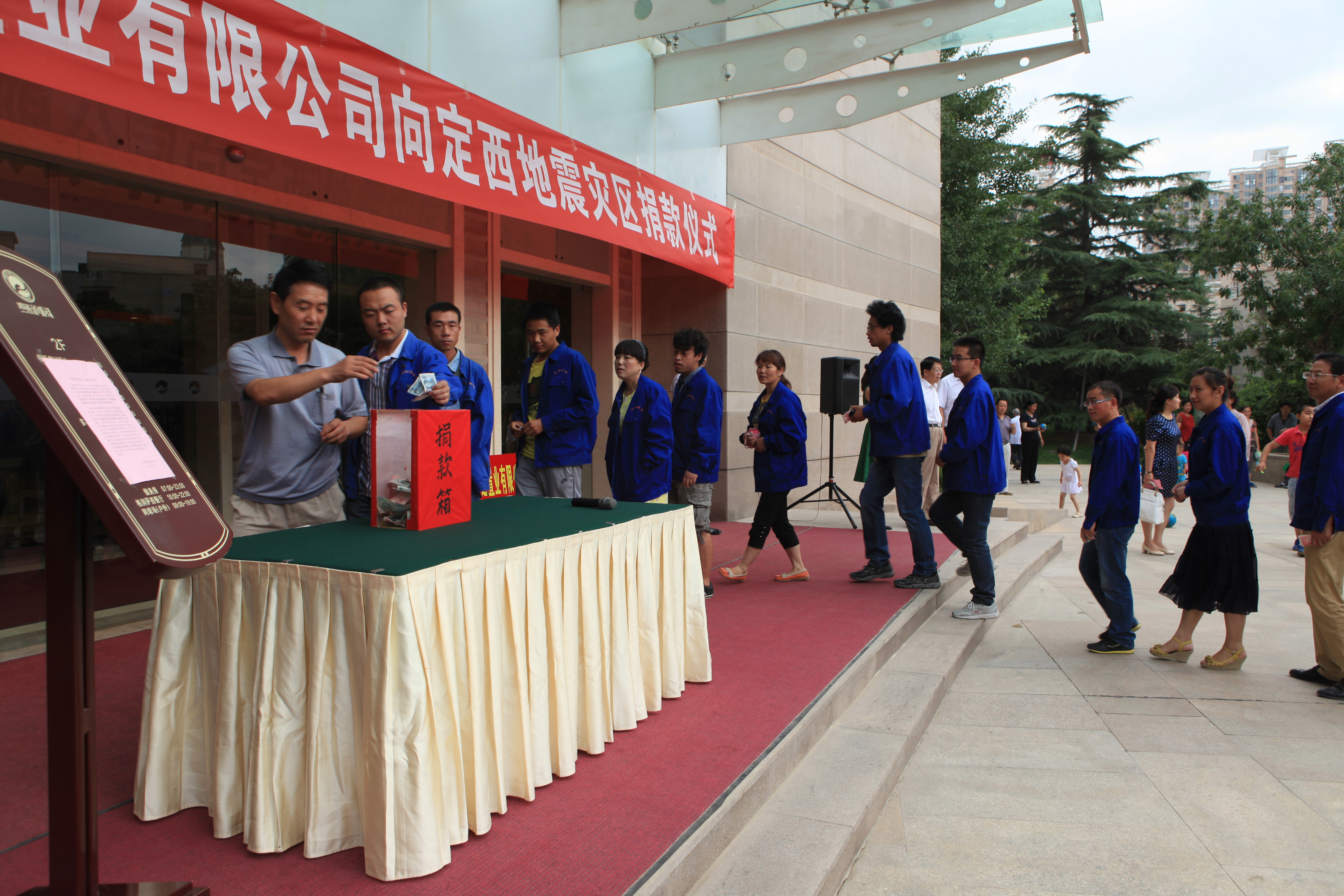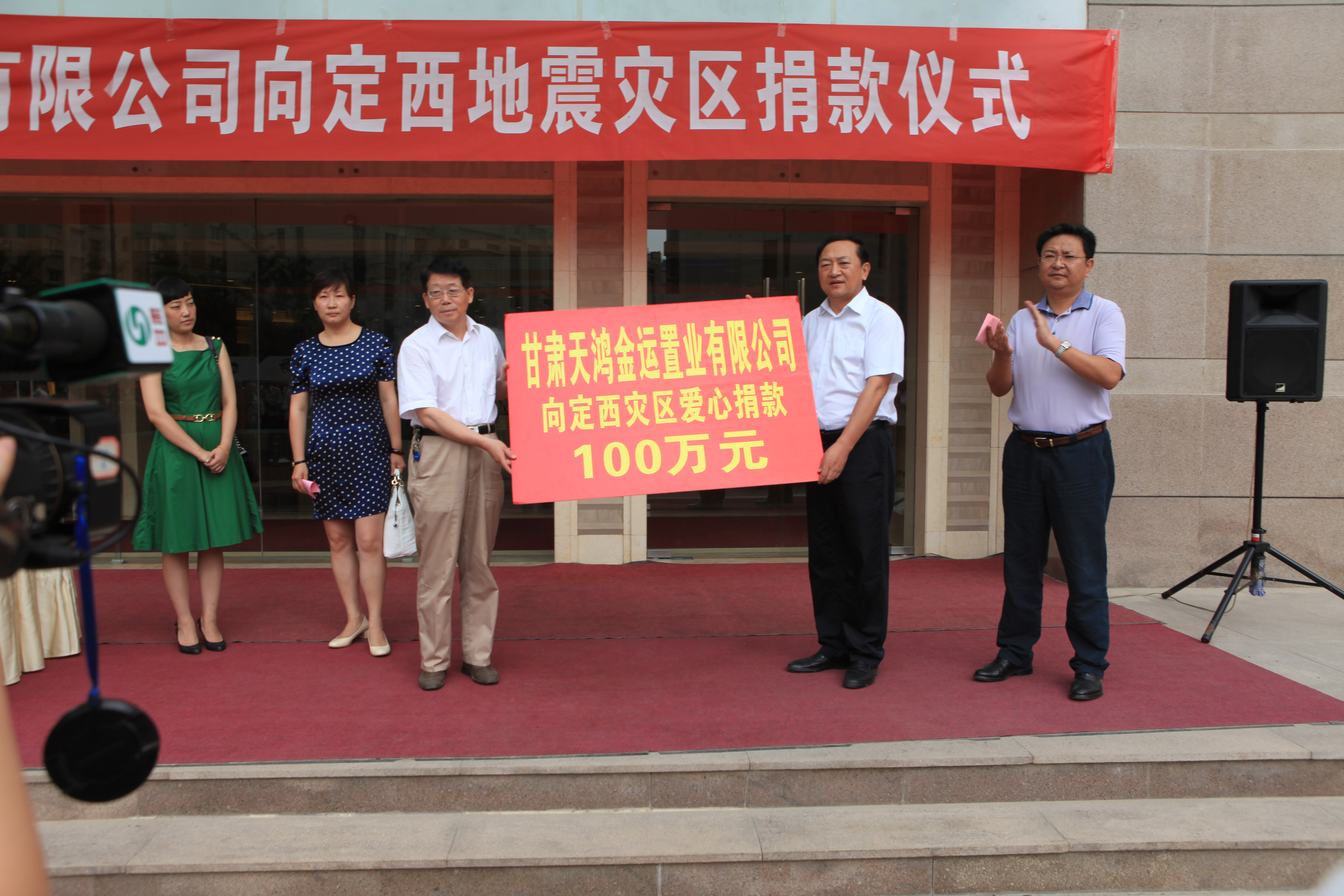 7月24日,甘肅天鴻金運置業有限公司全體員工在鴻運潤園小區內口舉行了甘肅地震災區募捐的儀式,甘肅省民政廳紀檢組長竇原坪出席了捐款儀式,甘肅天鴻金運置業有限公司董事長劉永輝代表公司向定西地震災區捐款100萬元,公司全體員工捐款17947.3元,總計捐款1017947.3元,